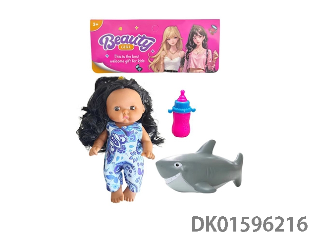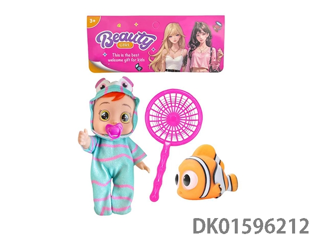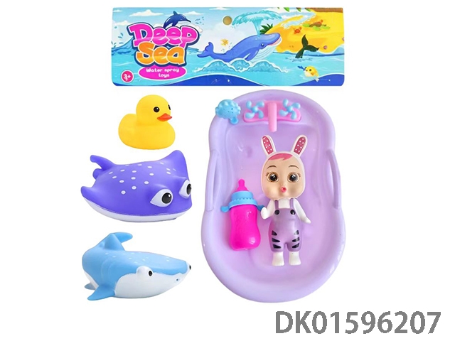 5寸搪胶哭泣娃配2只搪胶喷水鱼,鸭子,奶瓶(多款多色混装)