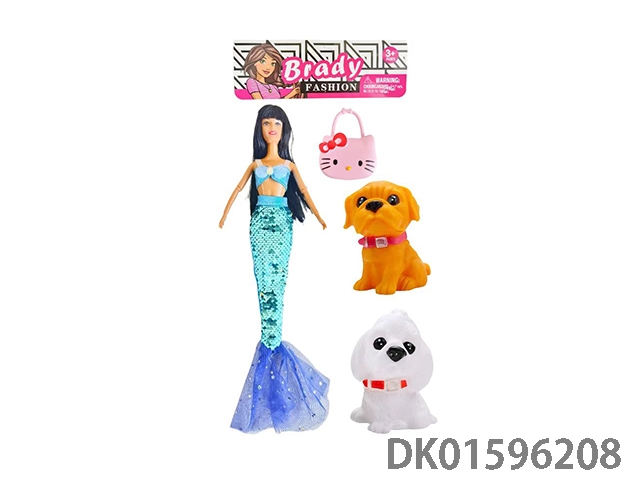 11寸半实身多关节黑人美人鱼配2只搪胶狗,包(衣服,发型多款多色混装)