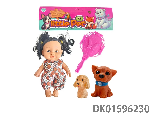 8寸表情娃带IC{4声迷尔音乐}配搪胶狗一大一小,梳子(衣服,发型多款多色混装)