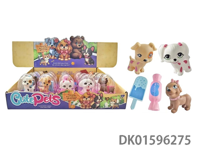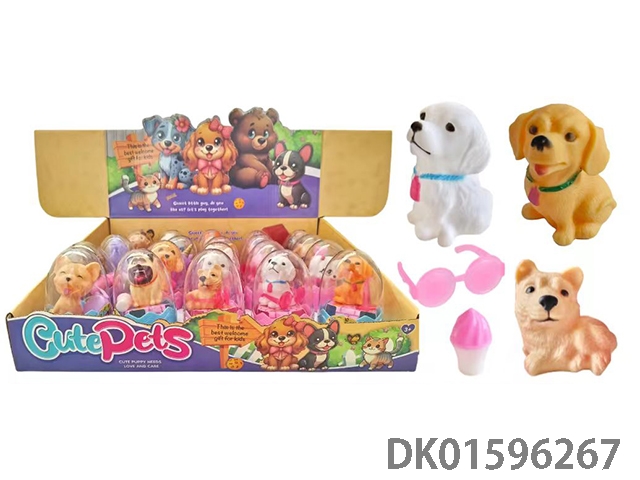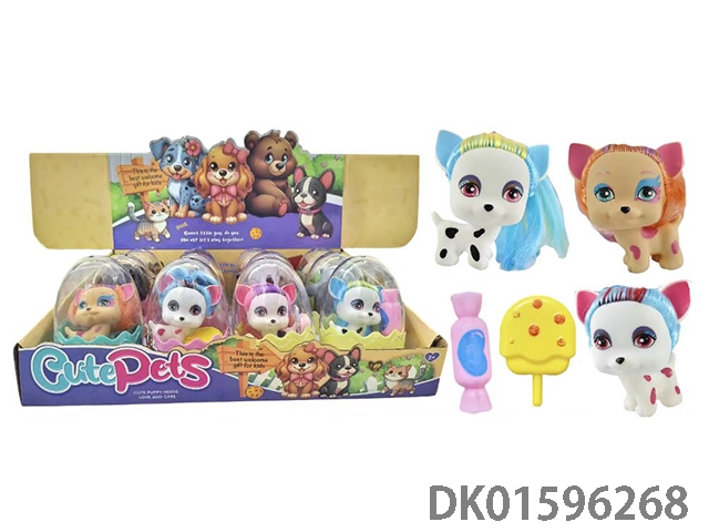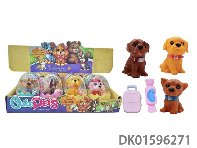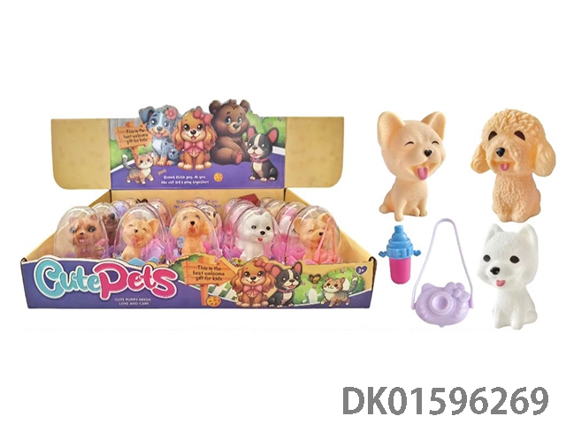 12只蛋壳全搪胶宠物狗配糖,行李箱(多款多色混装)
