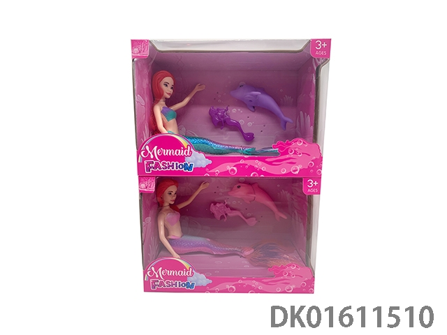 11.5寸实身美人鱼配海豚梳子混装(灯光音乐)
