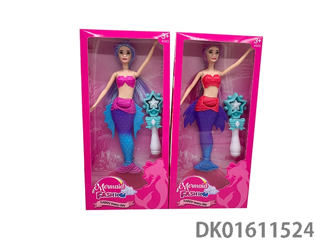 11.5寸实身长发美人鱼配饰品混装(灯光)