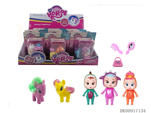 搪胶笑娃配马三色混装带梳镜包12PCS