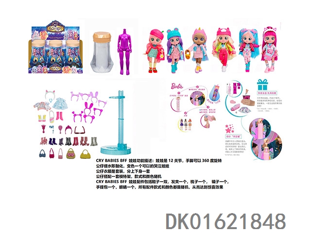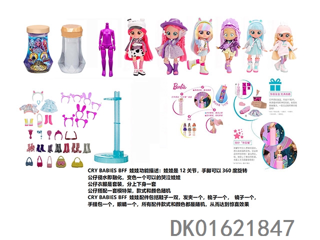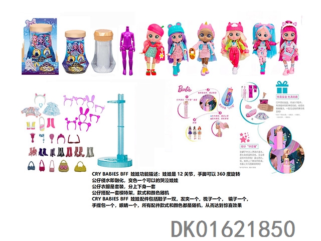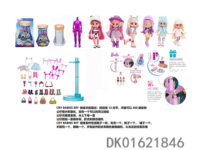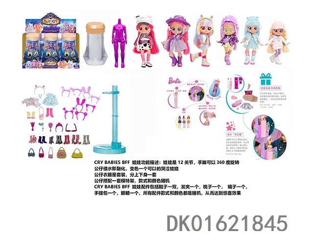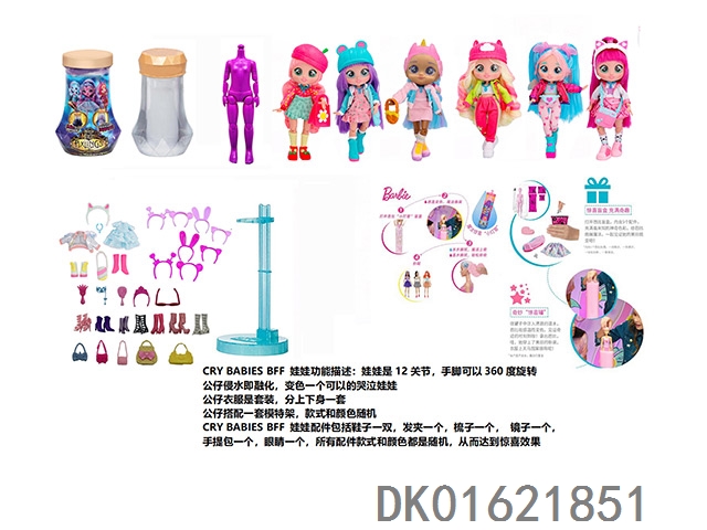水溶变色系列CRY BABIES BFF11.5寸11关节实身哭泣芭比娃娃带5惊喜配件发夹。一个模特架6款混装6pcs/box