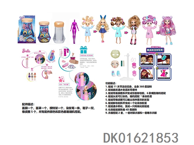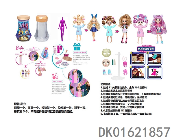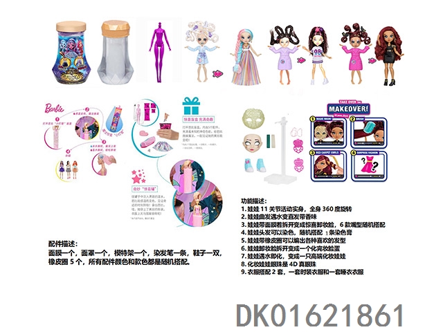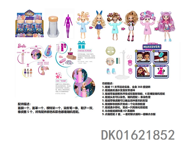 水溶变色系列FAIL.FIX.9寸11关节实身3D真眼珠变脸化妆芭比头发带6样不同惊喜配件。一件时装衣衣服3款混装