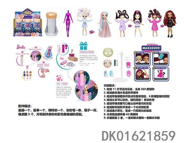 水溶变色系列FAIL.FIX.9寸11关节实身3D真眼珠变脸化妆芭比头发带6样不同惊喜配件。一件时装衣衣服3款混装6pcs/box