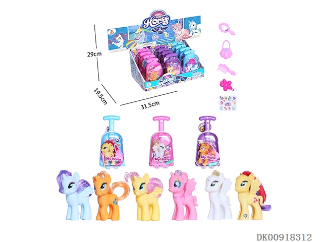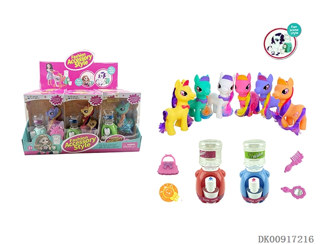 搪胶彩马饮水机6色混装配梳镜包12PCS