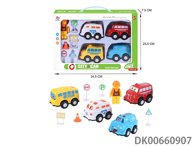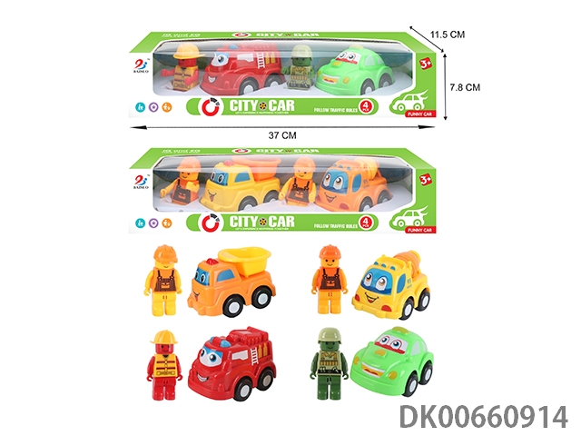 开窗盒惯性卡通车4只装2车+2人