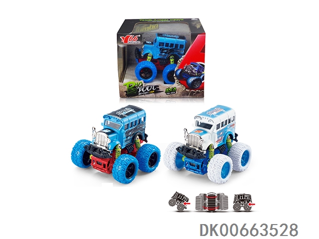 1:34Q版合金惯性四驱越野大轮带弹簧避震涂鸦(校巴)巴士车1款2色混装