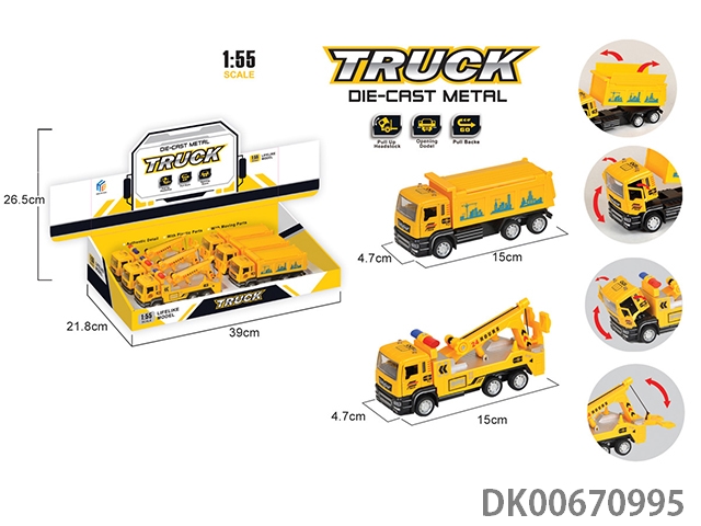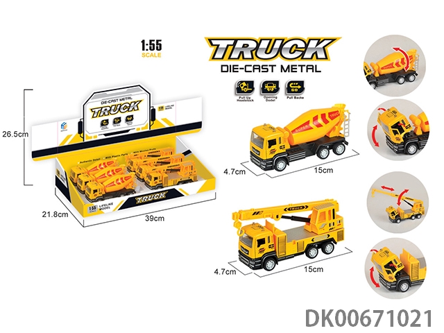 1:55开门合金回力工程车(2款混装)6pcs