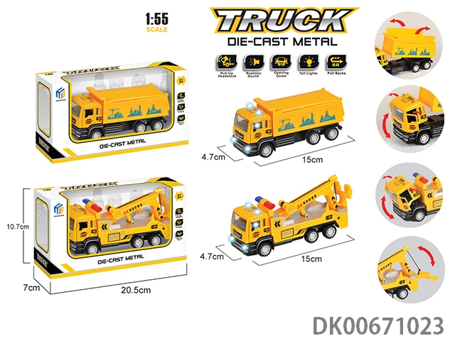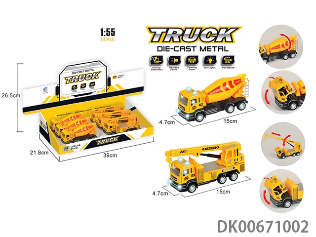 1:55开门灯光音乐合金回力工程车(2款混装)6pcs