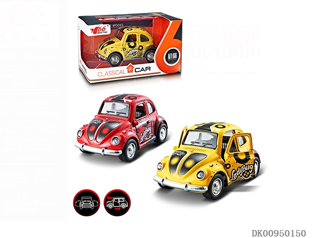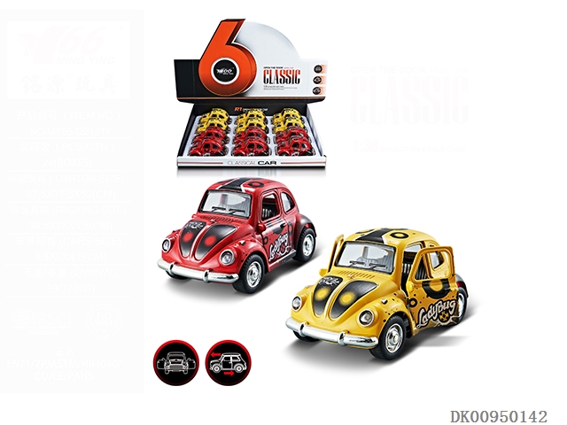 1:38Q版甲虫合金回力2开门涂鸦老爷车1款2色混装12pcs