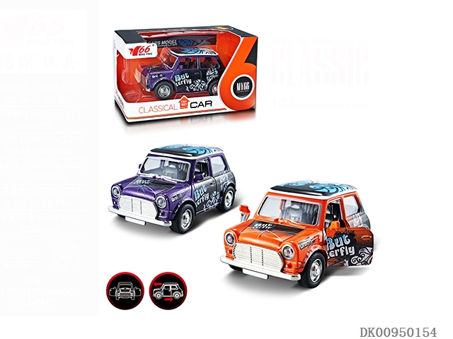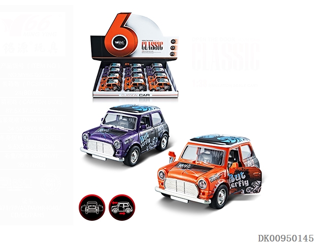 1:38Q版迷你合金回力2开门涂鸦老爷车1款2色混装12pcs