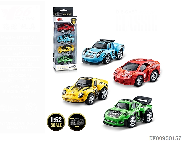 1:62 Q版回力合金涂鸦老爷车4款混装