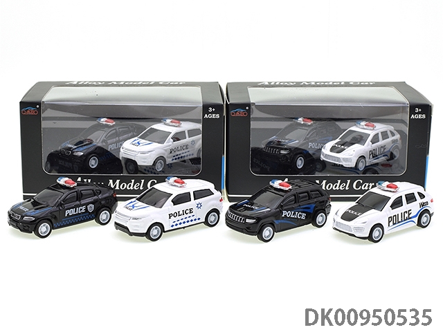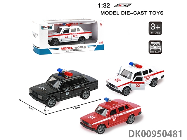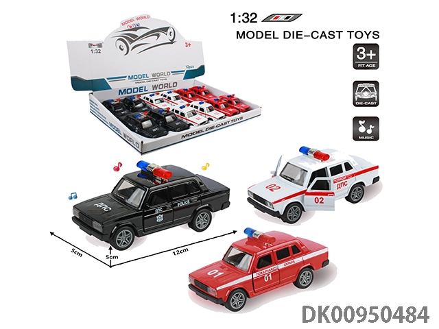 1:32仿真回力合金车2开门拉达轿车警车带灯光音乐12PCS