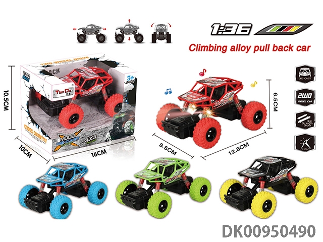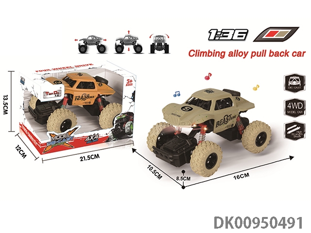 1:36A款攀爬回力合金车带前后弹簧避震带灯光音乐