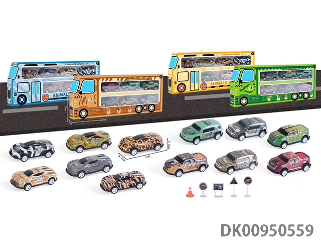 6款混装回力轻合金动物车+5路障1:64