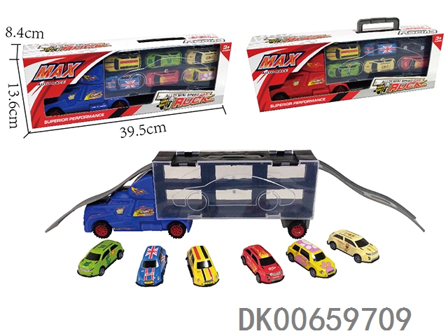 39厘米货柜车带6只铁皮回力车