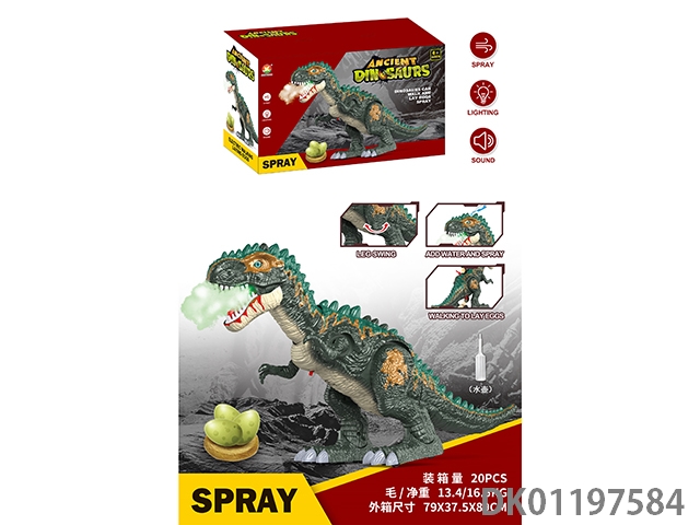 喷雾2通遥控霸王龙(带绿色灯、仿真叫声,生蛋,带喷雾)