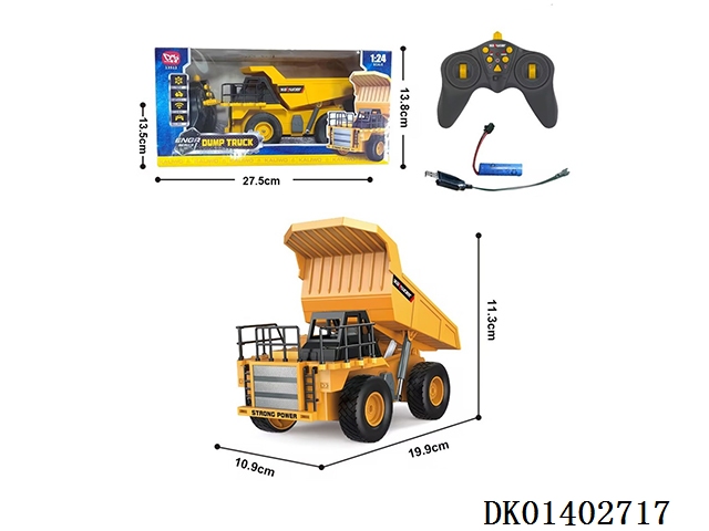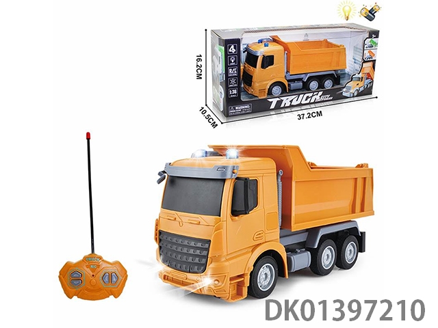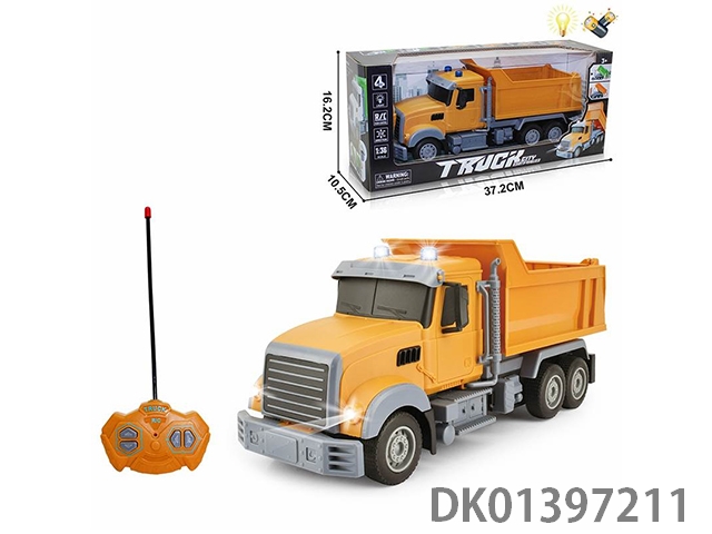 1:36四通遥控自卸车平黄头(配USB充电线+锂电池)(跨境亚马逊模型车工程车仿真车模)
