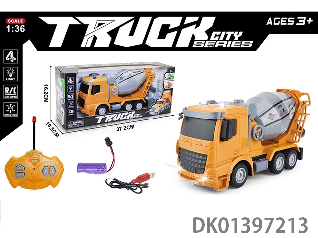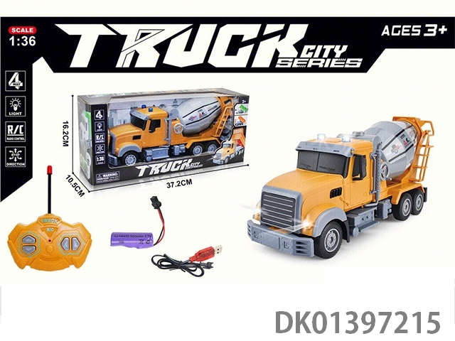 1:36四通遥控搅拌车平黄头(配USB充电线+锂电池)(跨境亚马逊模型车工程车仿真车模)