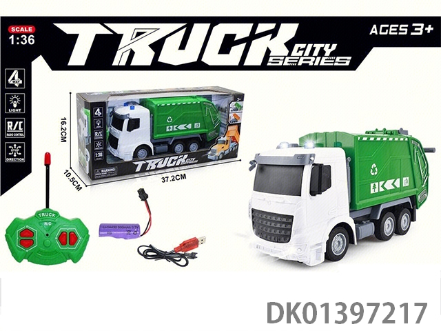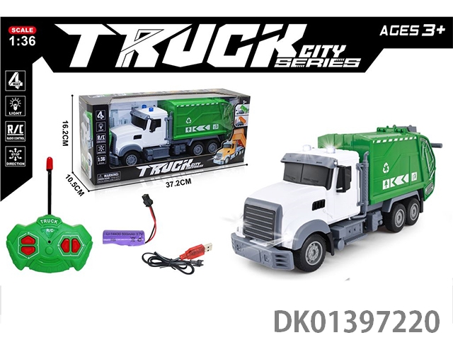 1:36四通遥控环卫车长白头(配USB充电线+锂电池)(跨境亚马逊模型车工程车仿真车模)