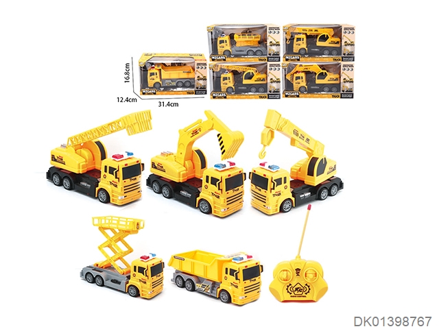 四通遥控工程挖土机+云梯+吊车+升降车+翻斗车 五款混装