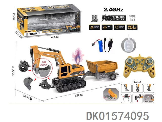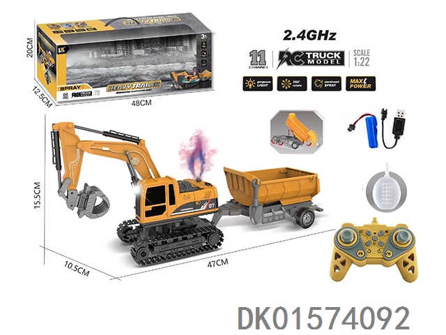 1:22十一通遥控灯光声音喷雾挖掘机拖板2.4GHz