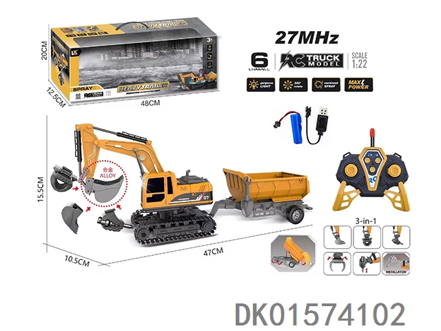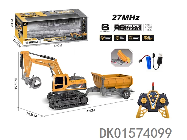 1:22六通遥控灯光挖掘机拖板27MHz