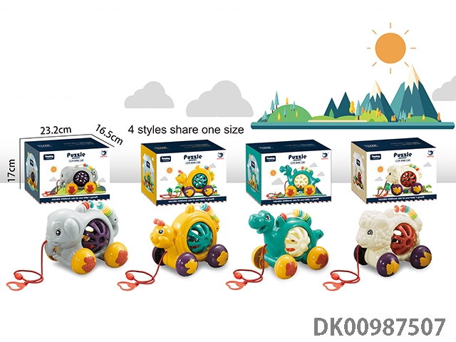 益智学爬学步拉线动物绵羊大象蜗牛恐龙4款混装