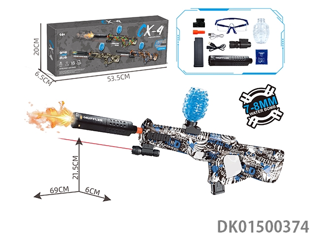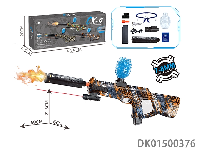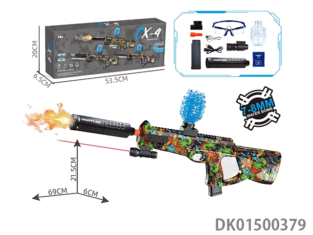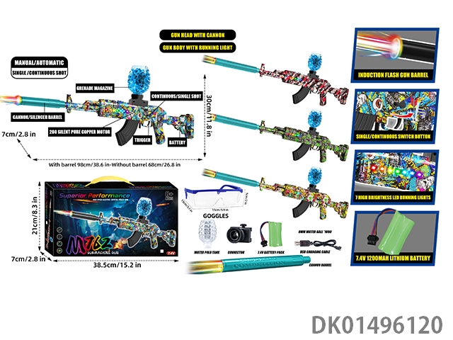 可拆装4节12合1双锂电池供电七彩灯光电动声音大M762突击步枪水球8毫米空气弹射上供弹3种模式射击游戏套装(枪头感应镭射灯炮和枪身环绕流星灯)