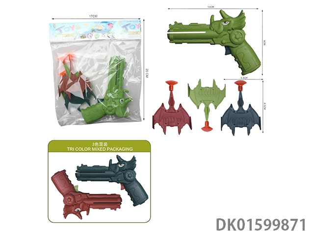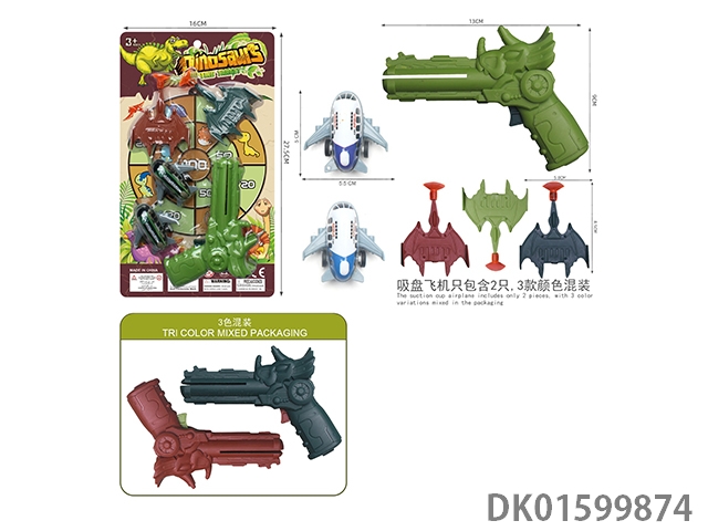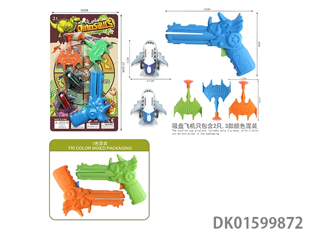 恐龙飞机枪(一支枪配2只带吸盘飞机,2只5.2回力飞机,枪3色混装,带