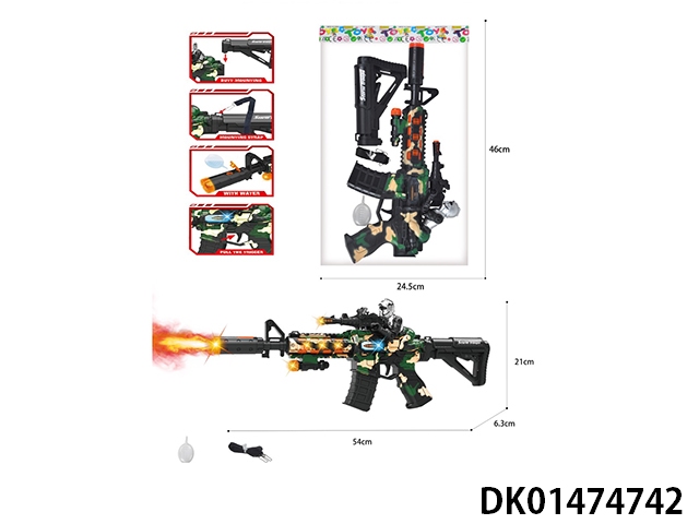迷彩喷雾声光伸缩振动冲锋枪配背带配吸水瓶(不包电)