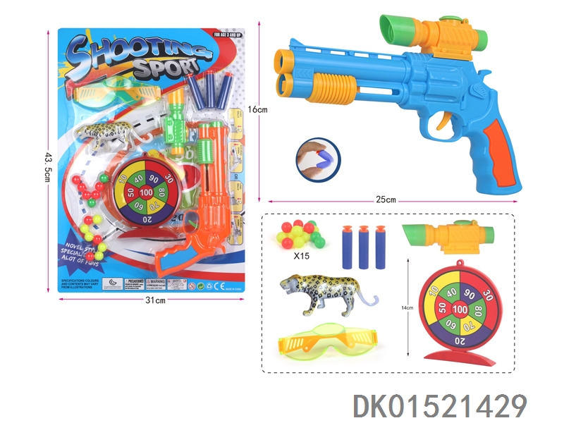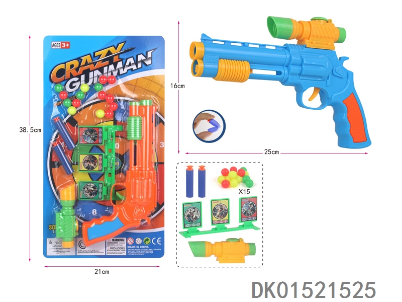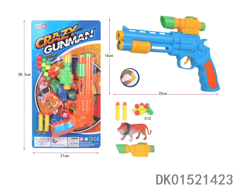 左轮乒乓球软弹枪配标靶+动物(二色混装)