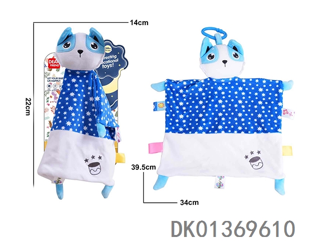 彩色动物款亲肤安抚巾毛绒玩具--蓝猫