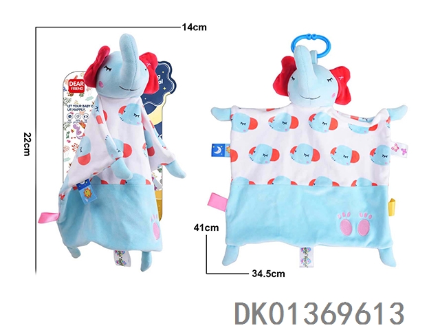 彩色动物款亲肤安抚巾毛绒玩具--蓝色大象