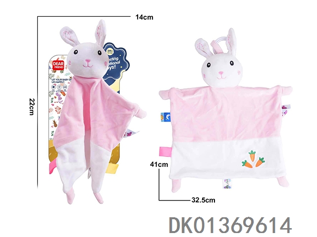彩色动物款亲肤安抚巾毛绒玩具--粉兔