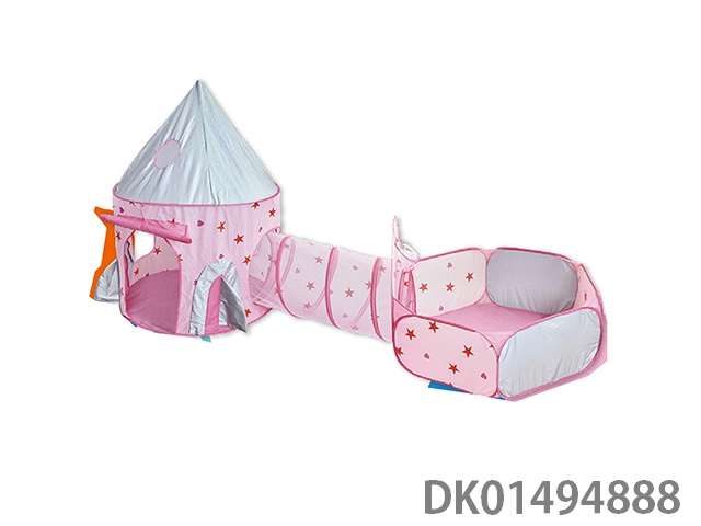 粉色五角星蒙古包球池带通道三合一可折叠游戏屋儿童户外帐篷男孩女孩玩具过家家