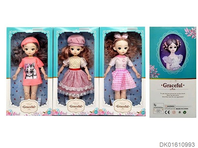 爆款热销精美3D真眼珠14寸实身12关节肥童芭芘娃娃3款随机混装