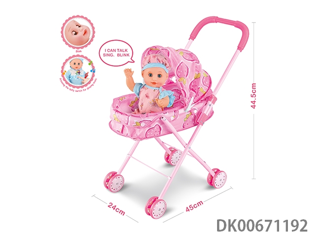 金属儿童手推车配14寸音乐说话唱歌眨眼男娃