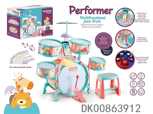 蜂鸣器卡通实色灯光音乐爵士鼓(34CM 纸围裙)无包电