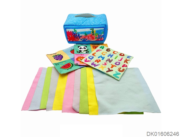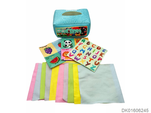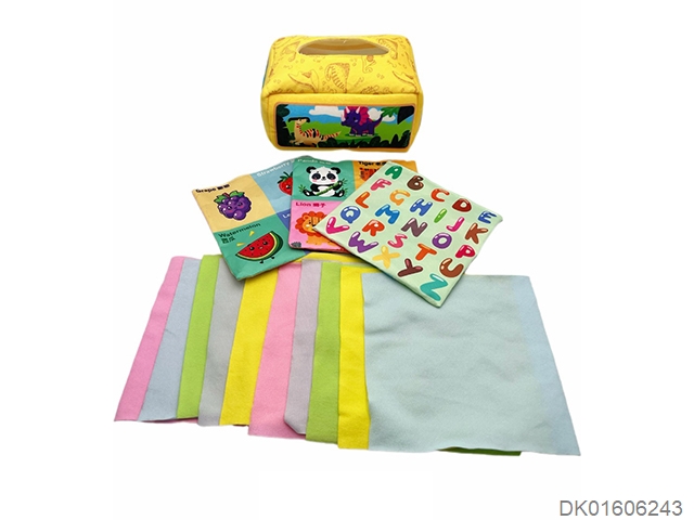 蓝绿动物乐园抽纸盒配13张抽纸(10张绒布+3张中英文响纸)