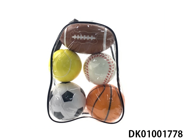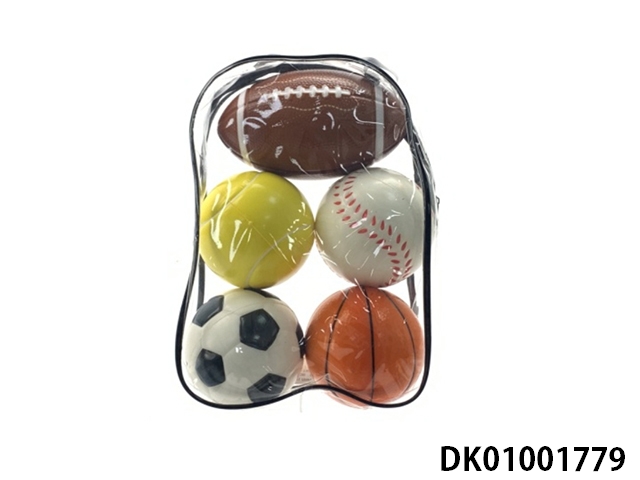 5粒PU球(11.5CM足球、11.5CM篮球、16CM橄榄球、10CM网球、10CM棒球)