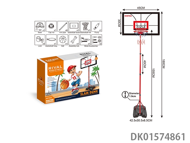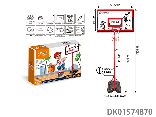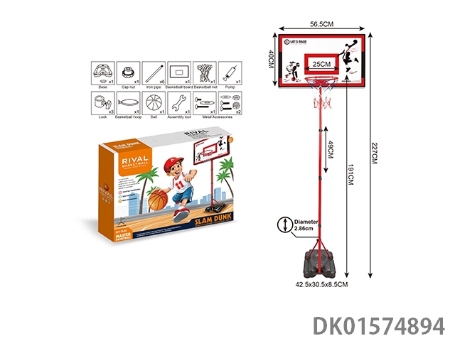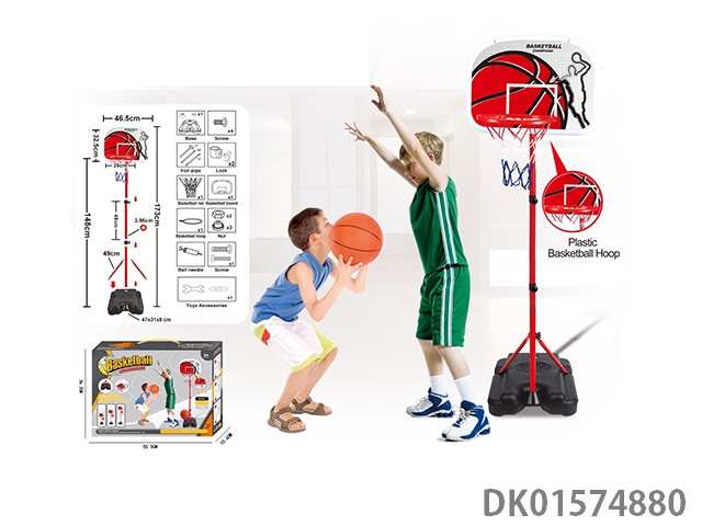 塑料框立式篮球架 二节铁管+四方脚