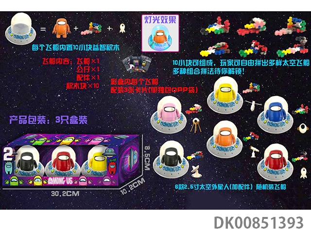 8.5CM太空外星人飞船(带灯)系列1三只盒装