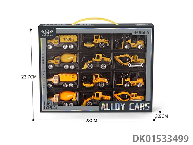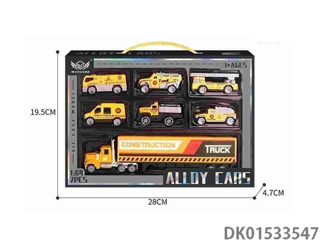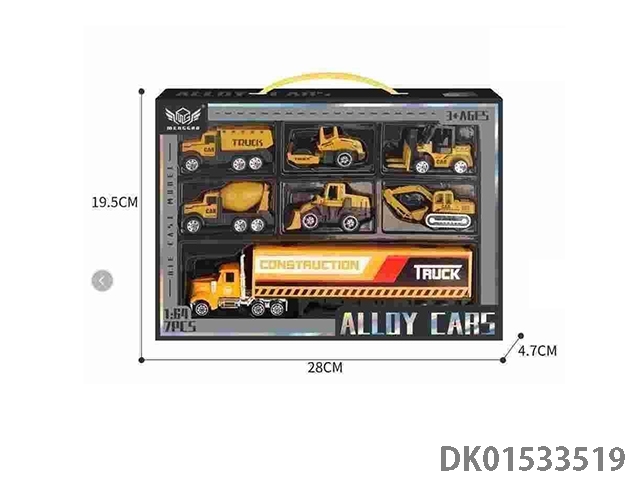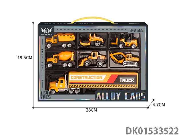 合金黄色工程车套装(6只+黄色小货柜车)