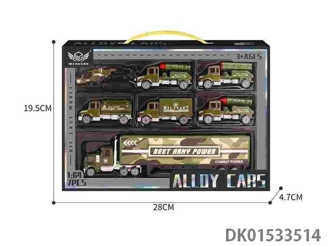 合金军事车套装(6只+军绿色小货柜车)