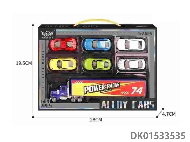 合金赛车套装(6只+蓝色小货柜车