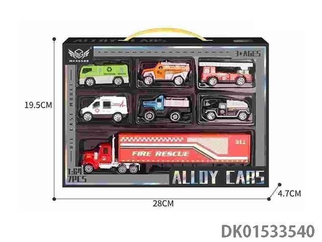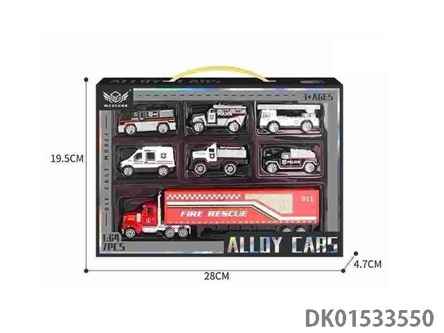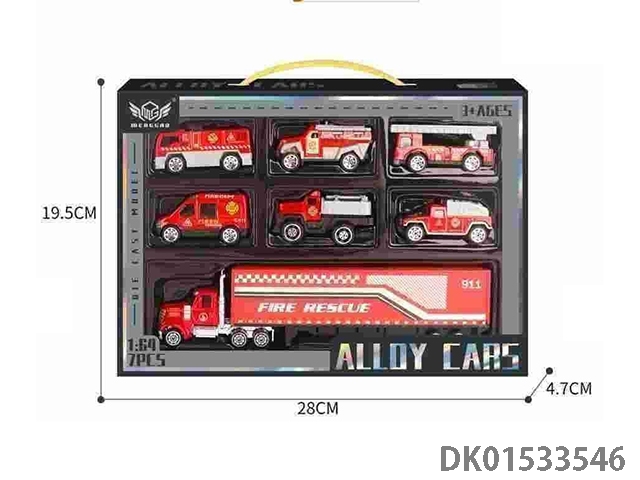 合金城市六色消防各1套装(6只+红色小货柜车)