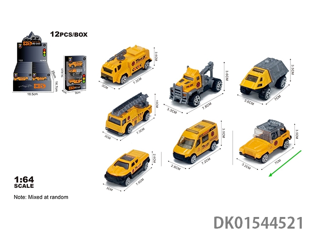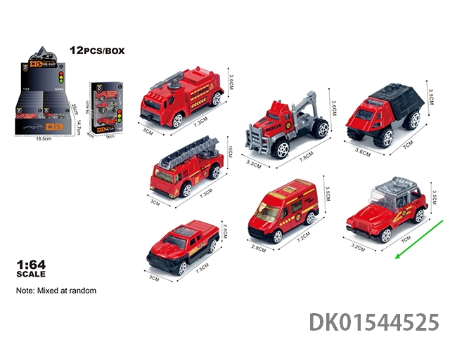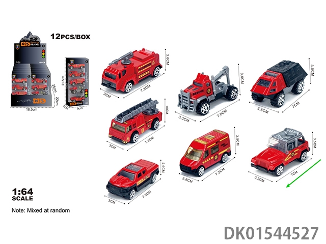 英文1:64压铸锌合金消防3只装车模 12盒/展示盒(7款混装)
